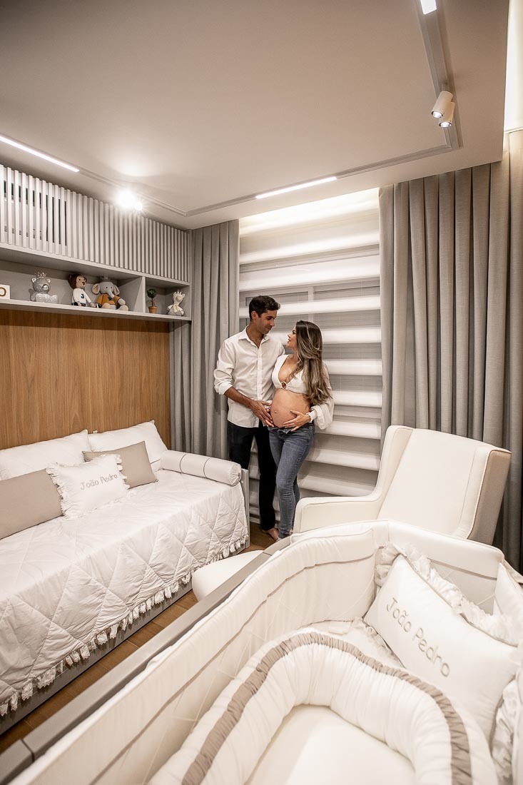 A Dhay e o Pedro, são médicos, e nem preciso dizer sobre a correria e responsabilidades dessa linda profissão, né? Então, nada melhor do que registrar esse momento tão especial, no conforto do seu lar, onde já está tudo prontinho, para receber com muito amor, o querido João Pedro!